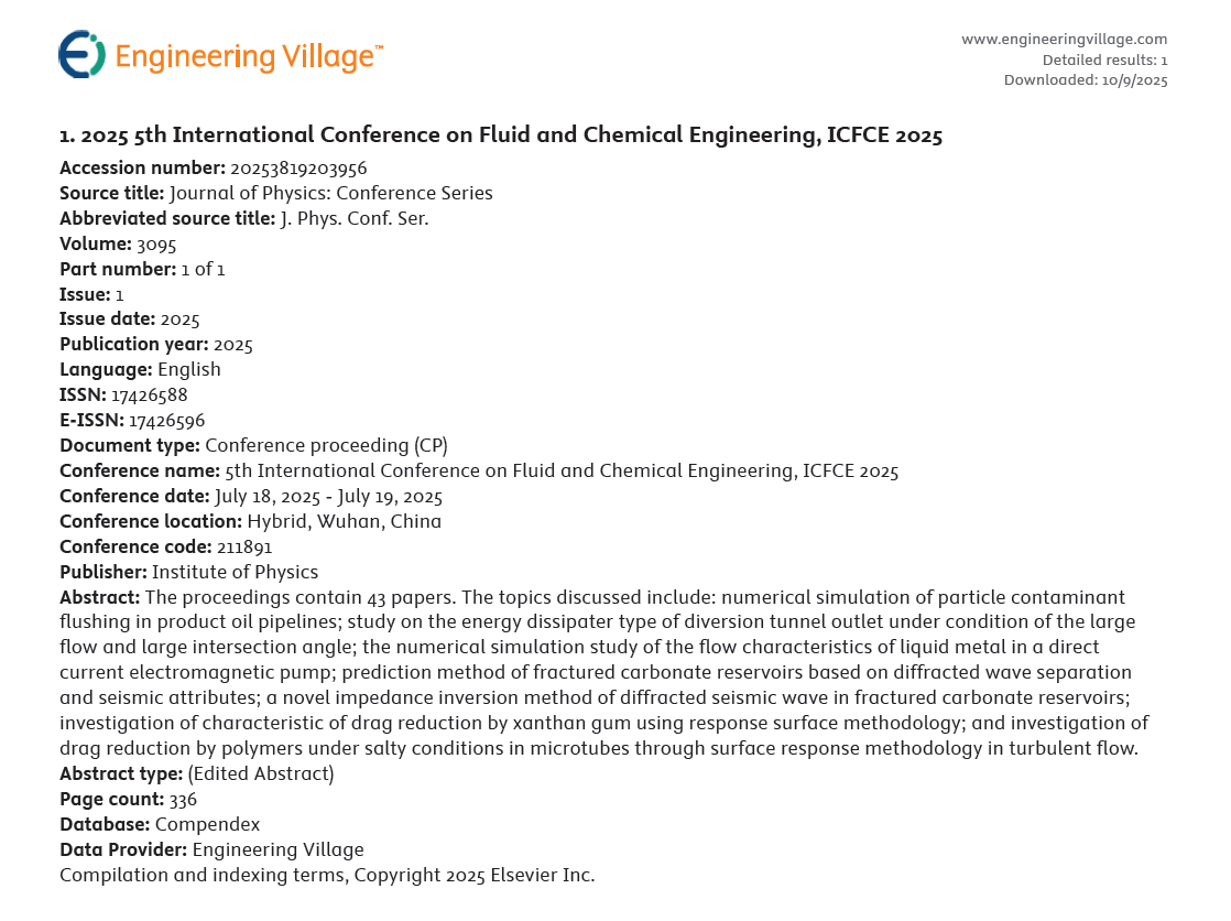 为共同探讨流体与化学工程相关理论和实践问题,增进同行间的相互了解与交流,“2026年第五届流体与化学工程国际学术会议(ICFCE 2026)”将于 2026年 7 月 22-23 日在中国武汉举办。本次会议将邀请相关领域的国内外著名专家学者参会,以主题报告、口头报告和墙报等形式开展多领域同行间的学术交流。