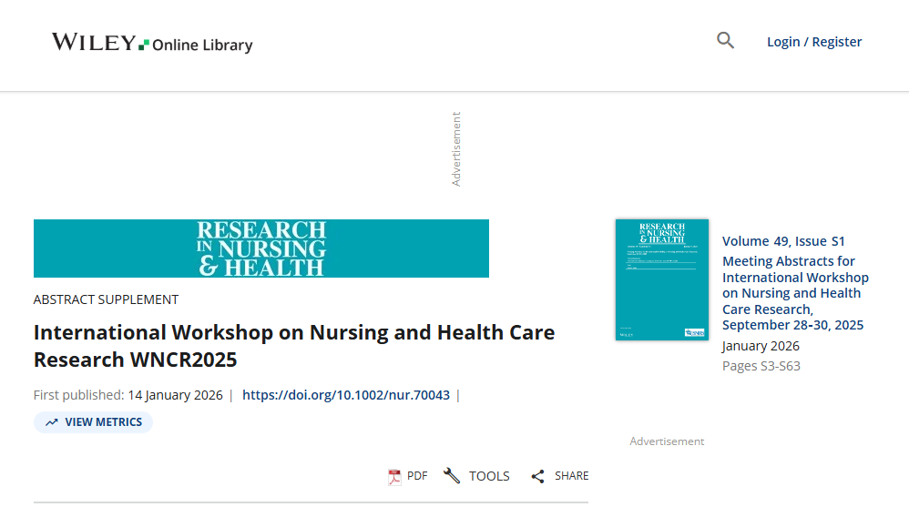 提交至 WPMH 的摘要将收录于会议论文集,并以特刊形式发表在《护理与健康研究》(Research in Nursing & Health)期刊上(JCR 分区--Q2;中科院分区--4 区)上,这是 Wiley 出版的 SCI-E 索引的期刊,该期刊影响因子为 2.1。