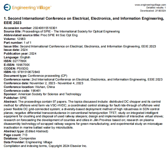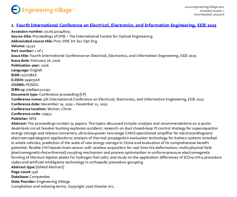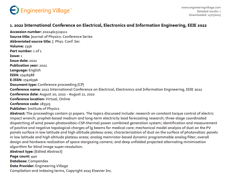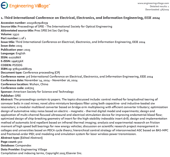 EEIE 2025、EEIE 2024、EEIE 2023、EEIE 2022 已被EI检索。
