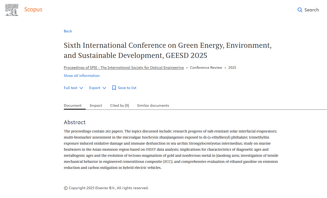 2025年第六届绿色能源、环境与可持续发展国际学术会议(GEESD 2025)已成功被EI检索!