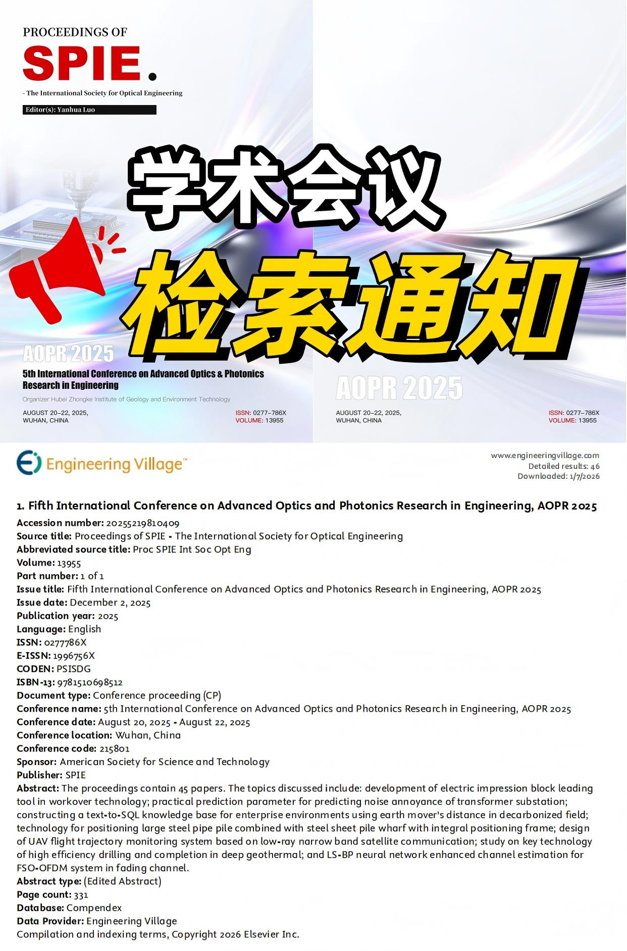 AOPR2025会议论文集已成功被Engineering Village检索!